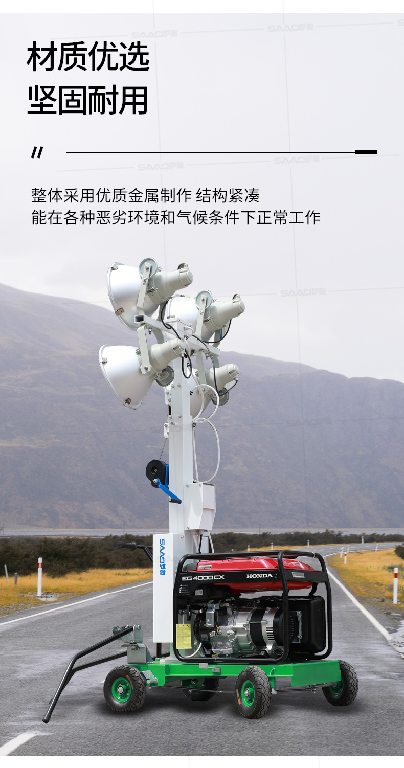 工程照明車SZM-1000A用于體育場館、機場、碼頭等大型公共場所,公路、鐵路、電力等緊急搶險現場,露天采礦現場,以及防洪防汛、搶險救災現場等其他需要緊急備用光源、電源的場合