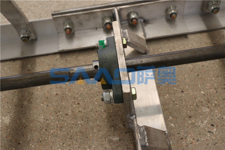 3,振動梁單節(jié)之間采用超強(qiáng)萬向聯(lián)軸器,可調(diào)節(jié)5-10度拱形或者凹型。如欲使厚度很大的混凝土或坍落度很低的混凝土取得完全的振實度,需使用插入式振搗設(shè)備輔助振實底層的混凝土。