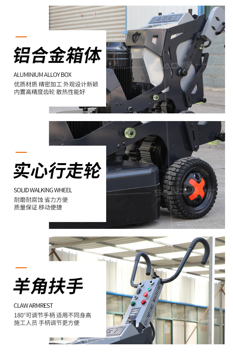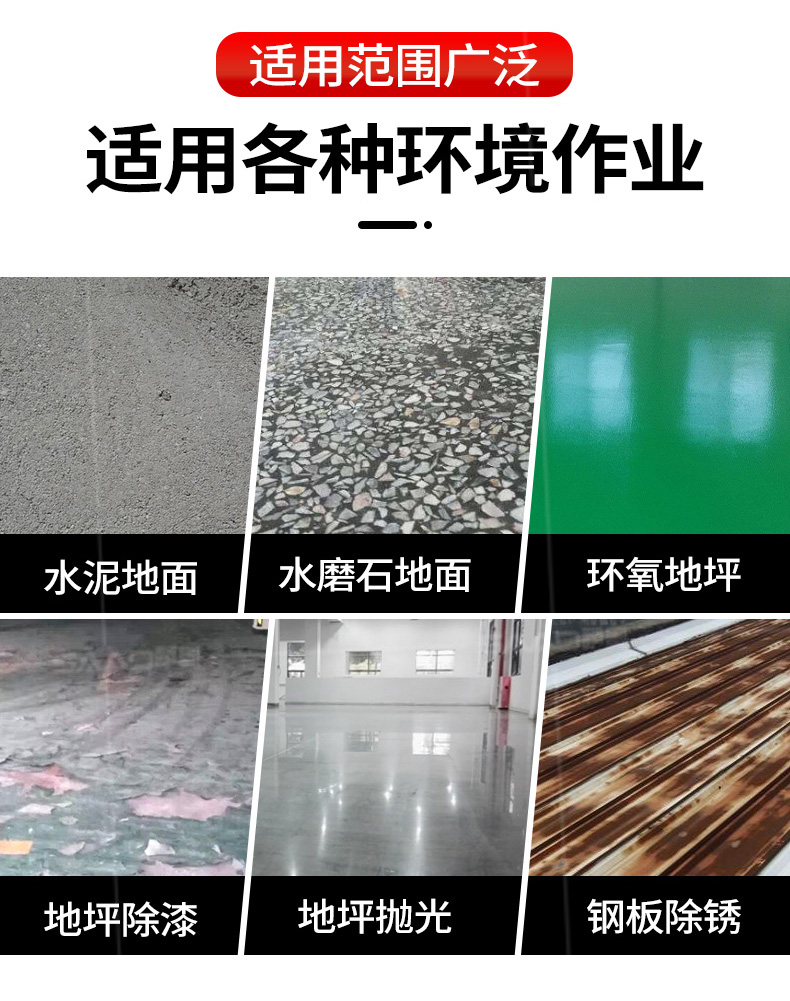 產品別名: 地坪研磨機、地坪打磨機、石材養護機、地面翻新機 產品用途: 其廣泛用于混凝土地面、石材地面的研磨、拋光,終達到舊地面翻新、新地面無塵的效果。具有輕便、靈活