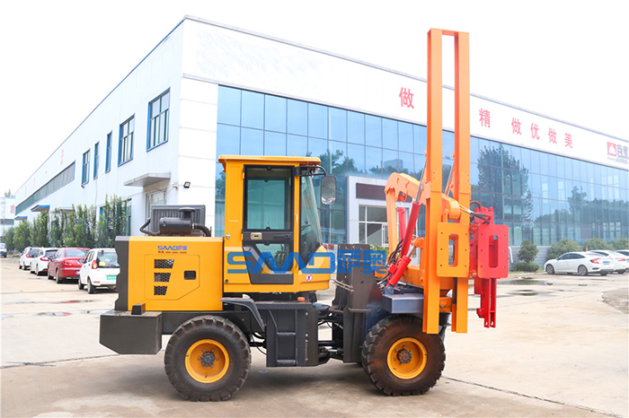裝載機式護欄打樁機是薩奧機械根據(jù)市場需求和自身技術(shù)成熟的情況下面向客戶需求而研發(fā)的一款產(chǎn)品,是集裝載、打樁、鉆孔等功能為一體的新型產(chǎn)品。采用全新設(shè)計理念、精心研制整體功能,結(jié)構(gòu)模塊化兼顧的設(shè)計思想,全封閉各木式安裝結(jié)構(gòu),更利于產(chǎn)品快速安裝和轉(zhuǎn)場,可廣泛運用于公路、高速等路面護欄的樁孔鉆進工作。