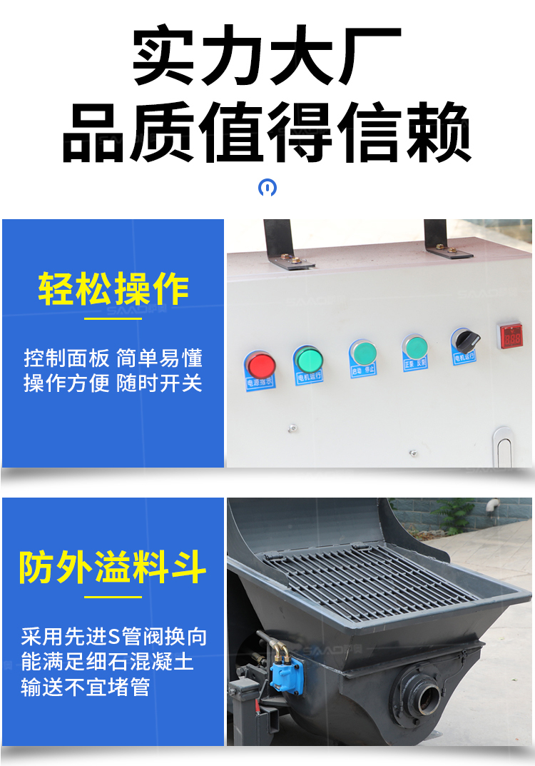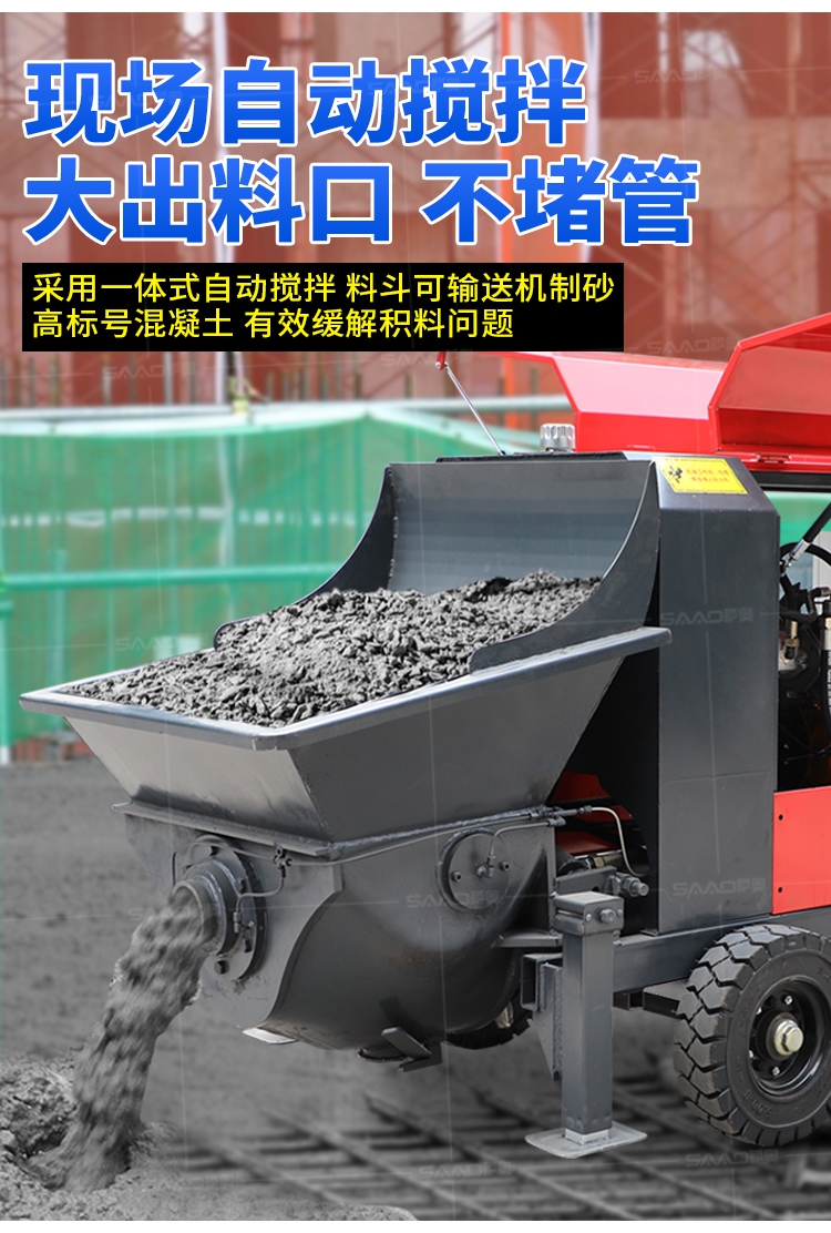 采用獨創的泵車尾輪驅動系統輕松解決移動時帶來的各種困難;采用雙排風冷散熱系統散熱效果更好,液壓系統采用壓力更高,性能更穩定的柱塞式自動變量主油泵,采用先進的三維立