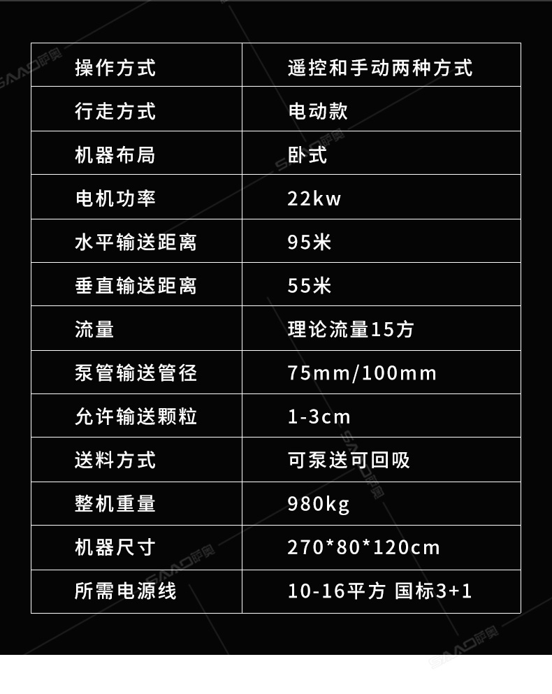 該設(shè)備具有電機(jī)功率大、性能穩(wěn)定、施工效率高等優(yōu)勢,使用電動(dòng)澆筑泵大大提高了施工效率,降低勞動(dòng)強(qiáng)度,節(jié)約人工,被廣泛應(yīng)用。具體產(chǎn)品詳情如下: