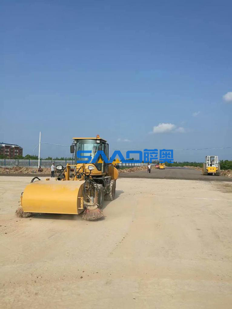 根據路面作業要求,在攤鋪機鋪油作業前,要求路基表面保持清潔,不能有沙石等雜物。一般情況下每50公里10人需要5個工作日。而薩奧道路施工強力清掃機只需要1個工作日就可以清掃干凈,大大提高了安全性和效率。薩奧道路施工強力清掃機不僅限于整機銷售,也針對用戶現有車輛進行清掃器的改裝,協助用戶單位建立全新的機械化清掃作業隊伍,提升作業效率!擴大經濟效益!