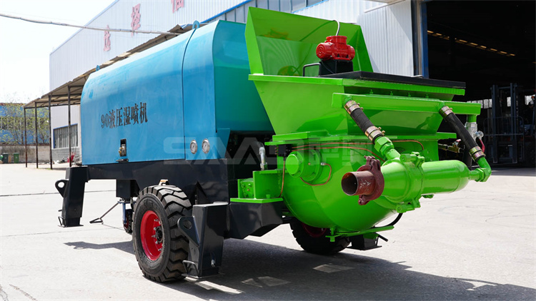 液壓濕噴機(jī)是利用液壓泵產(chǎn)生的推力,使用兩個油缸往復(fù)交替運(yùn)動,將稠密流物料由輸送管道送至混流管處,經(jīng)壓縮空氣形成稀薄流 通過管道送至噴頭處,在噴頭加入相應(yīng)比例的速凝劑,直接噴漿到受噴面上的一種機(jī)、電、液、三合一的機(jī)械設(shè)備,被普遍應(yīng)用于公路、鐵路、隧道、建筑、水電站等工程建設(shè)中。