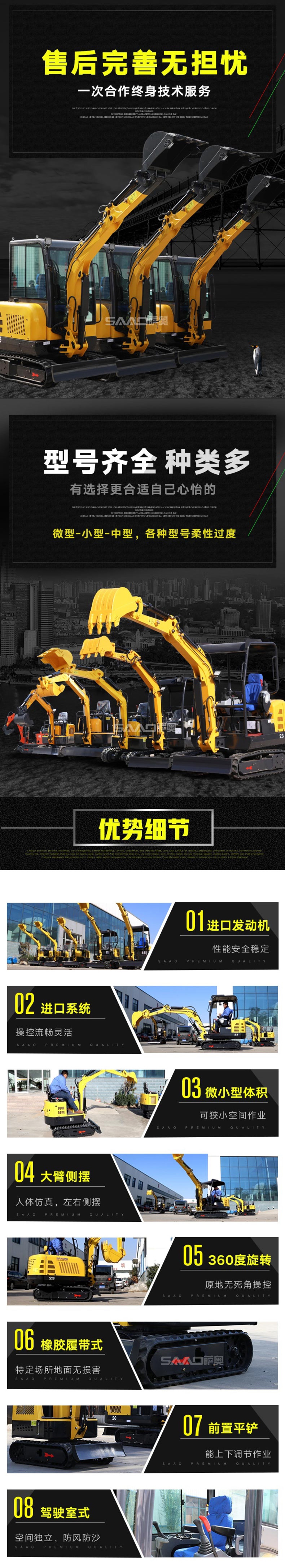 小型挖掘機主要適用于農業蔬菜大棚的土地疏松,市政部門的園林綠化、果園苗圃栽樹挖坑、混凝土路面破碎,砂石料攪拌等空間狹小的施工作業等;