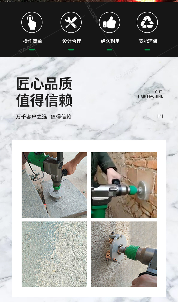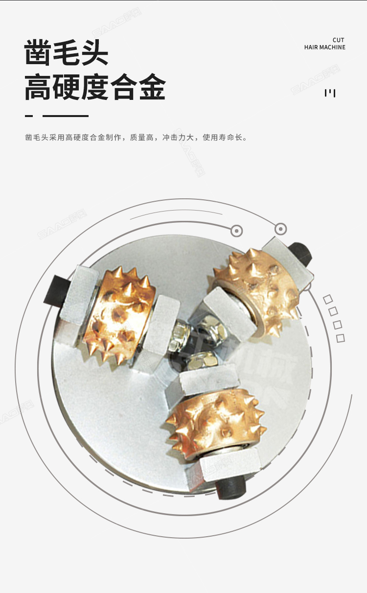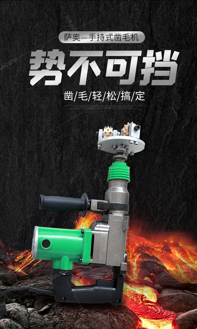 電動手持式鑿毛機 金剛石三頭鑿毛設(shè)備 小型水泥路面拉毛機 功率:1050w 工作效率:15-18㎡/h 電壓:220v 磨盤尺寸:50*120mm 合金磨輪尺寸:3*24齒 鑿毛深度:3-8mm 整機重量:7kg
