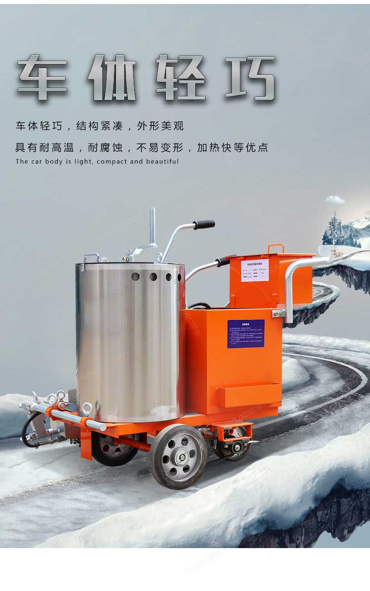 SAAO-160手推熱熔劃線機采用普通鑄鐵劃線斗,同步離合玻璃微珠自動撒播器,具有結構簡單、輕便、價優、性能優良等特點。
