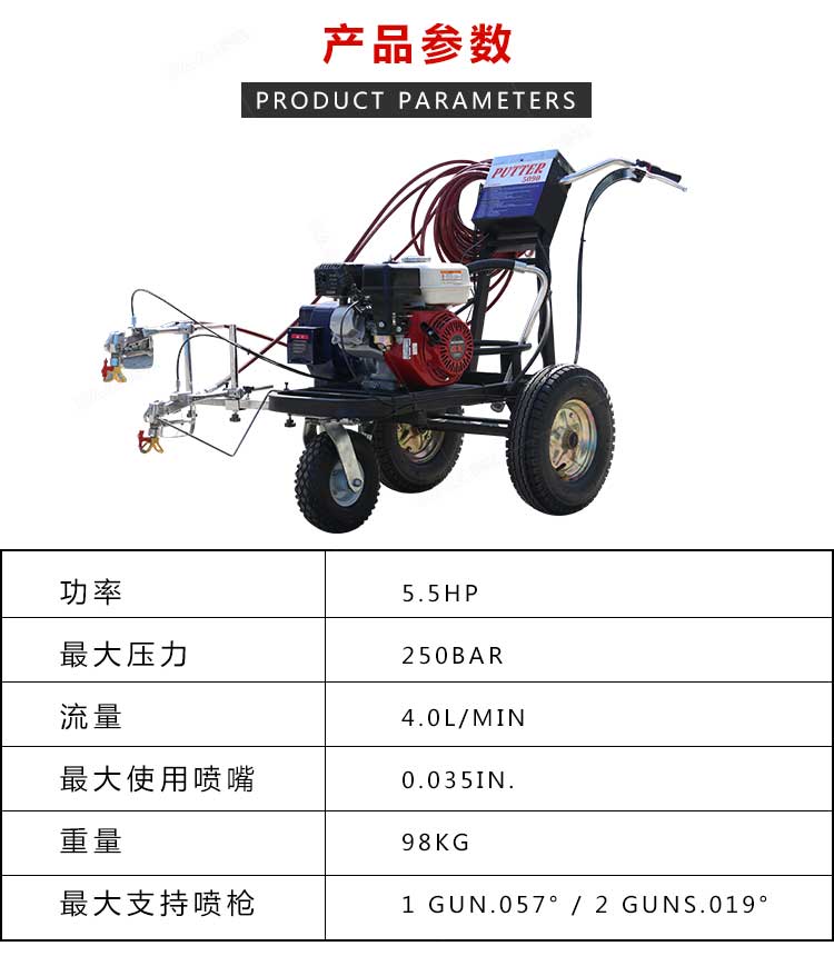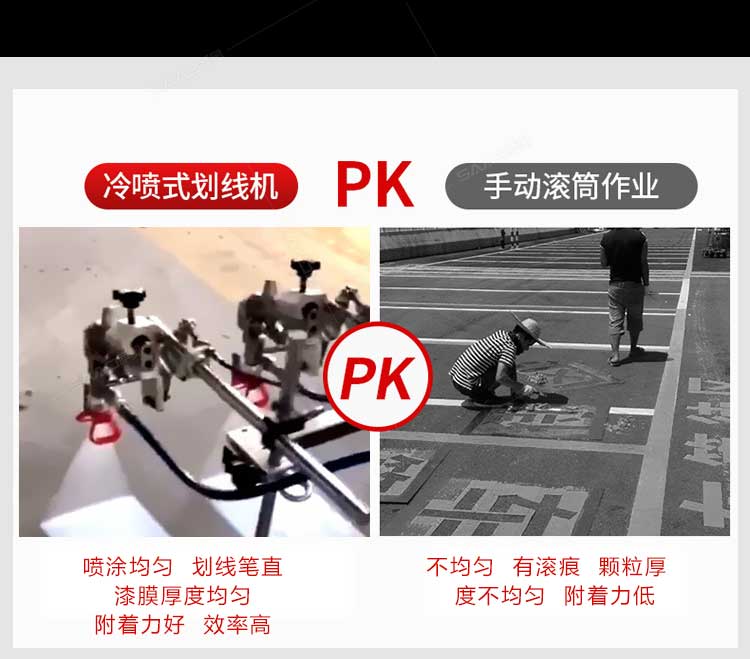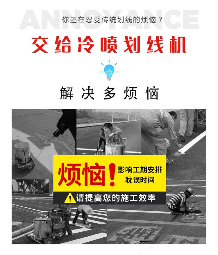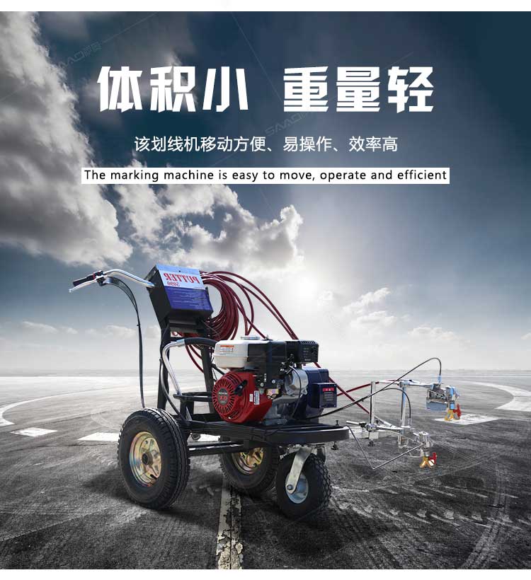 產(chǎn)品介紹: 冷噴劃線機(jī)是常溫標(biāo)線施工的專用設(shè)備,噴出的線型清晰、流暢、飽滿、均勻,主要用于公路、停車場(chǎng)、機(jī)場(chǎng)、加油站、公司廠區(qū)等涂畫直線、虛線、曲線、斑馬線、文字、