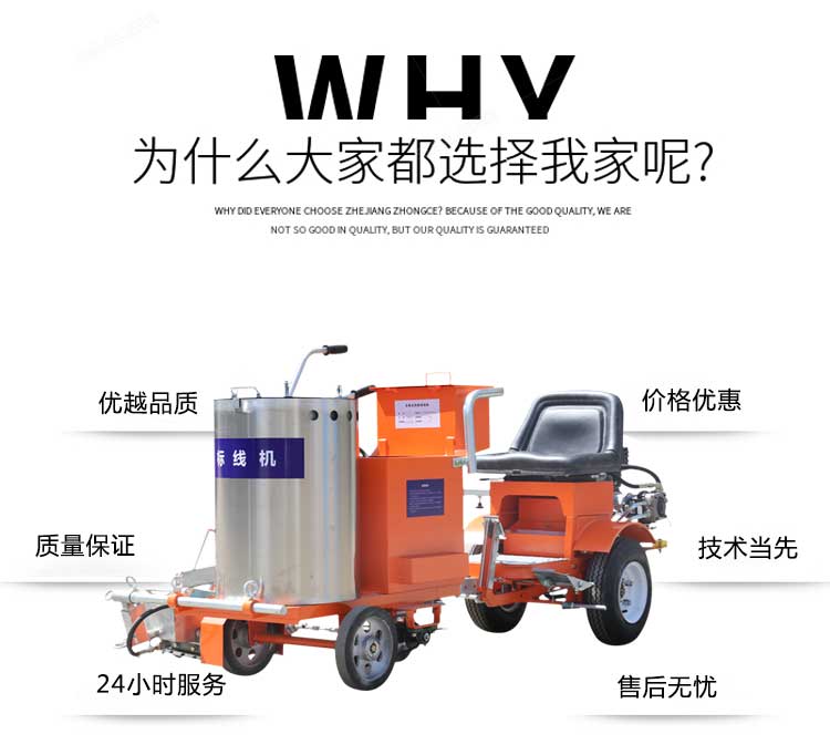 產品介紹: 自走式熱熔劃線機,一種廣泛應用于道路、高整公路、停車場、廣場和跑道的在平整的地面上劃出不同約束、指引和警示等規則限制標志的路面施工機械。劃線機以其快速、