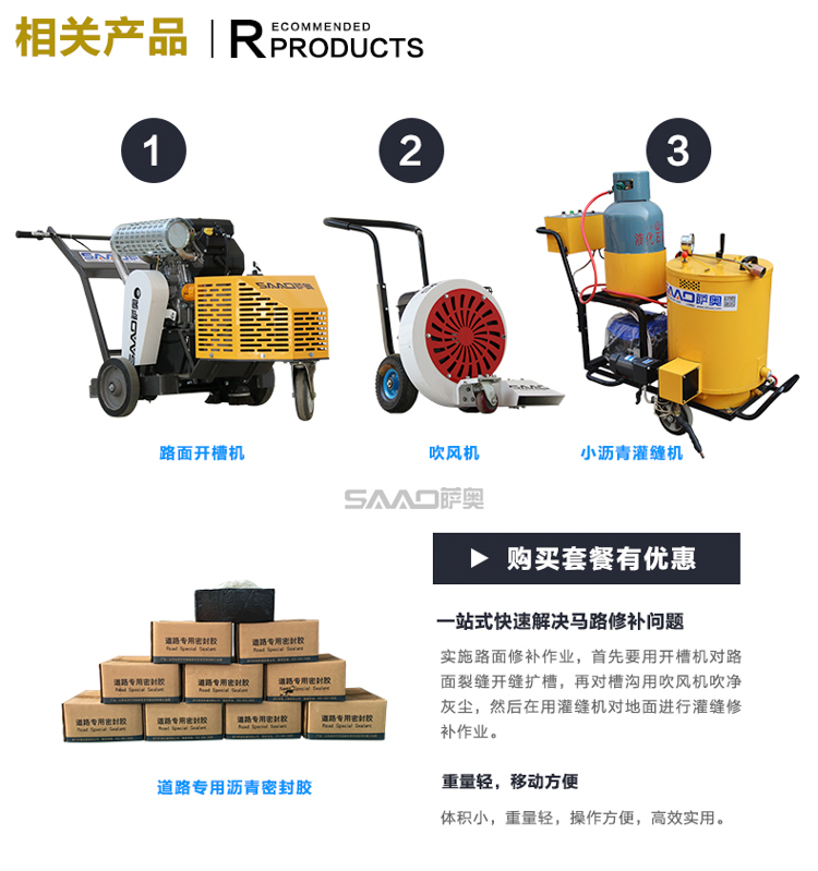 開槽機(jī)主要用于瀝青、水泥路面裂縫病害處治時(shí)的開槽作業(yè)。通過特制金剛石刀片快速將不規(guī)則裂縫整理成均勻的凹槽,形成新的結(jié)合面。優(yōu)化灌縫材料與縫槽的接觸層面,加強(qiáng)灌縫材料與縫槽側(cè)壁粘結(jié)的緊密性。