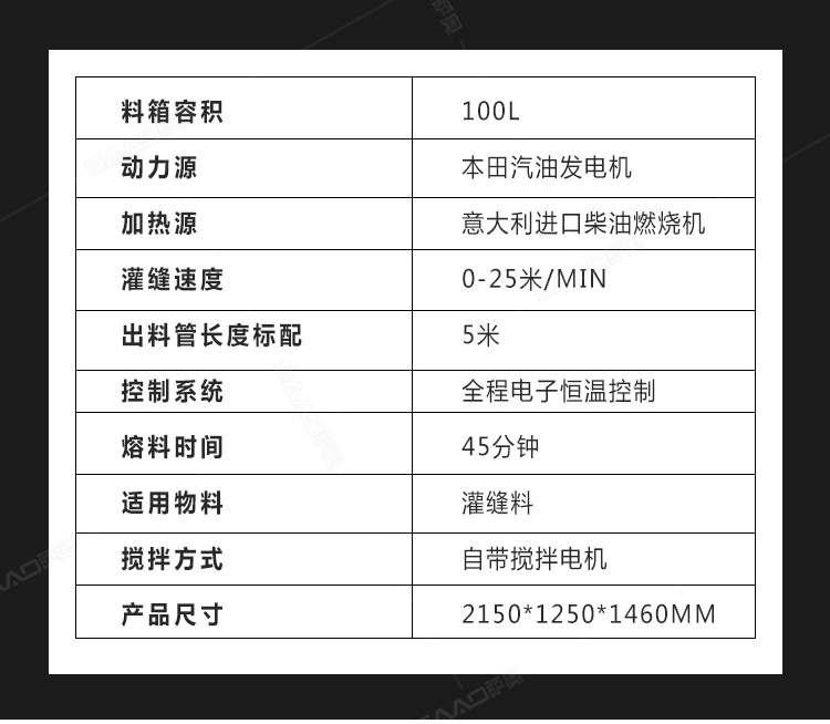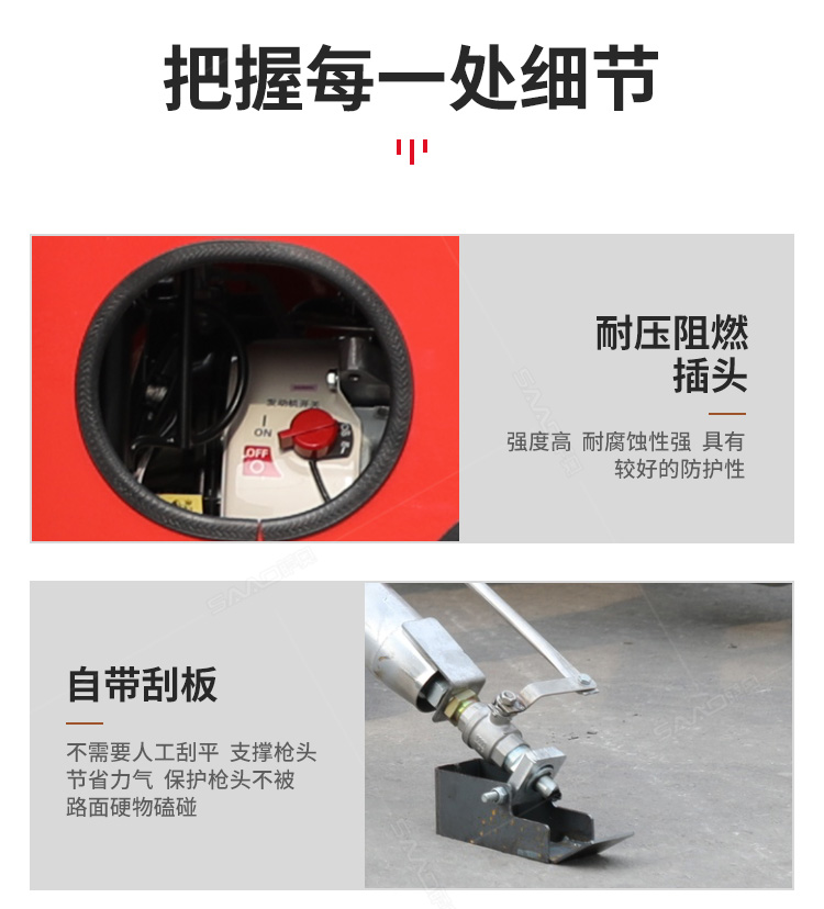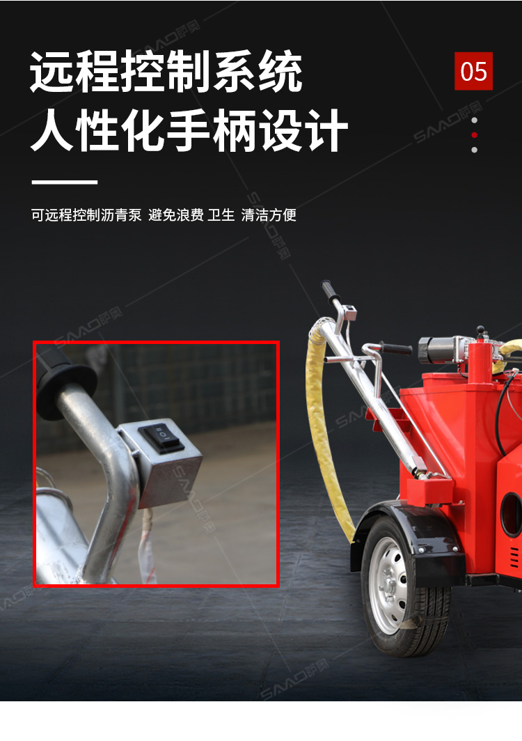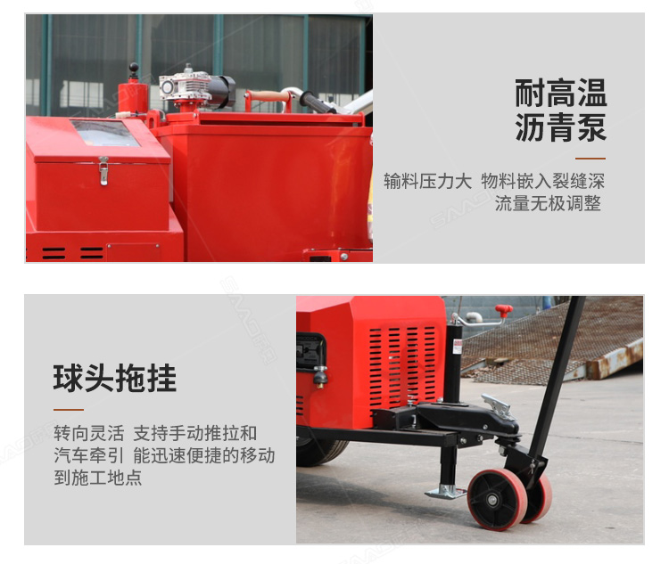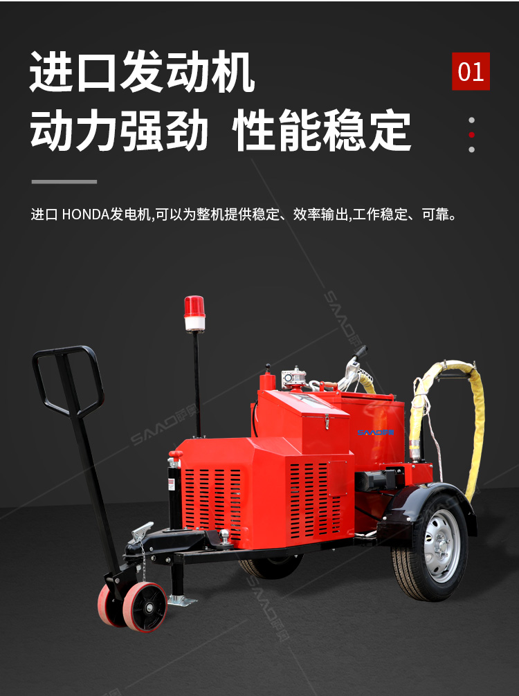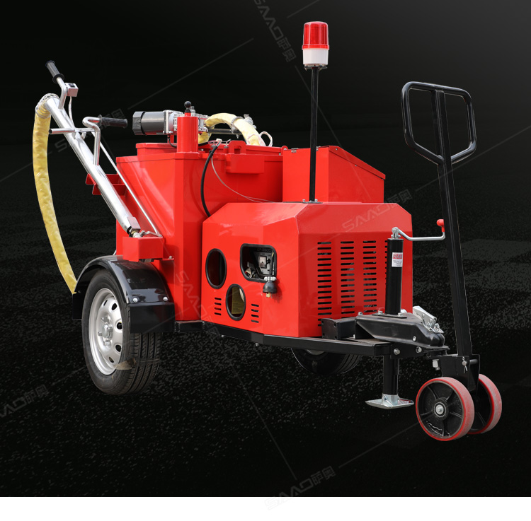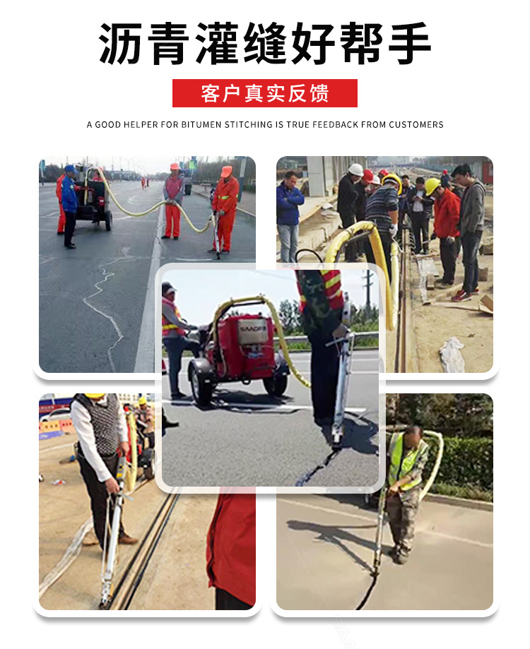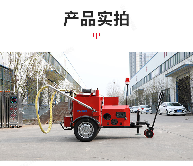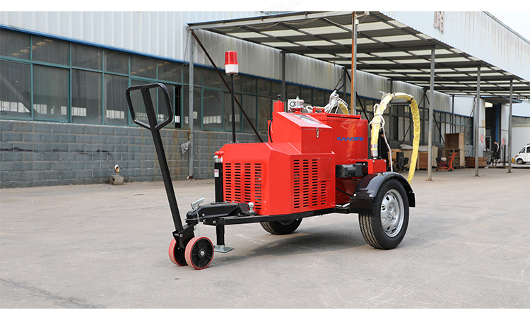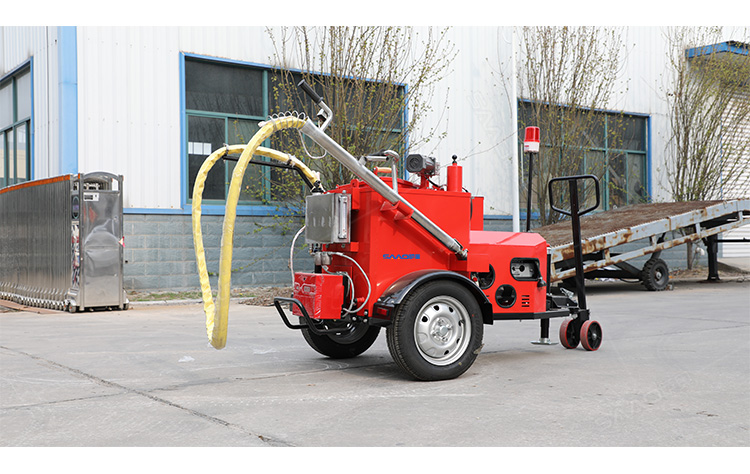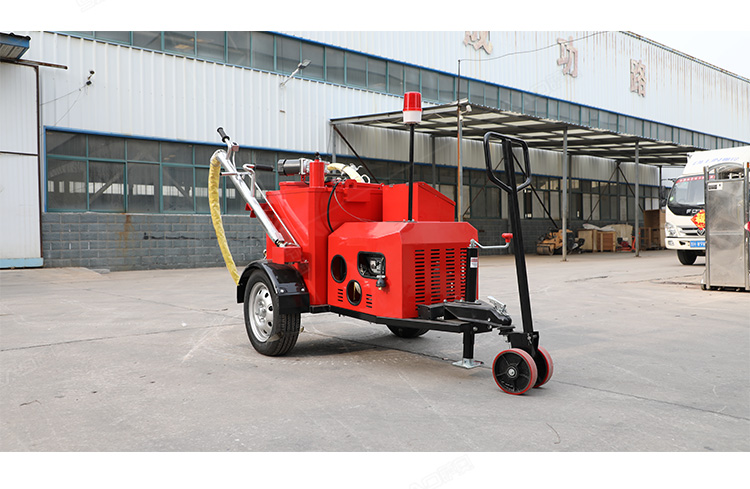 灌縫機主要有手推式和自行式手持灌縫管操作,采用進口柴油燃燒器加熱。在工作時首先在料箱內加入瀝青或灌縫膠,啟動發電機供電,依次間斷打開導熱油泵開關,燃燒器開關,出料