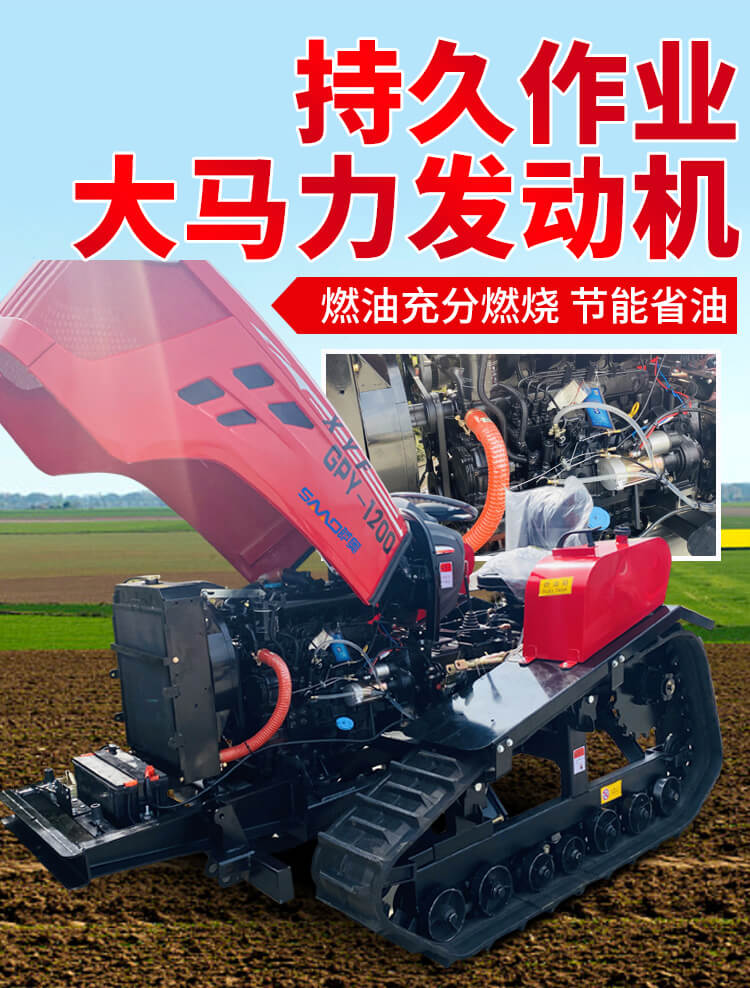 履帶旋耕機(jī)本機(jī)能完成耕、耙作業(yè),具有碎土能力強(qiáng)、耕后地表平坦等特點(diǎn)。