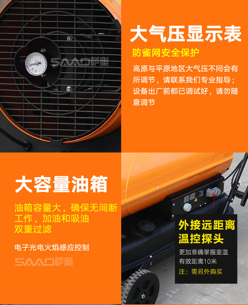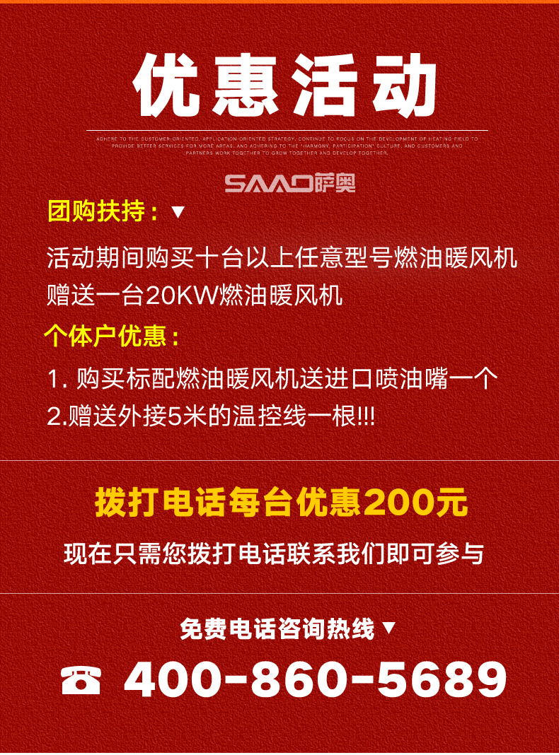 我廠專業生產溫室大棚暖風機,養殖場專用暖風機,15KW/30KW電暖風機,20KW/30KW/70KW/80KW燃油暖風機,型號齊全,全國發貨!過熱保護,恒溫,質量保證!如需了解請致電24小時免費電話:400-860-5689