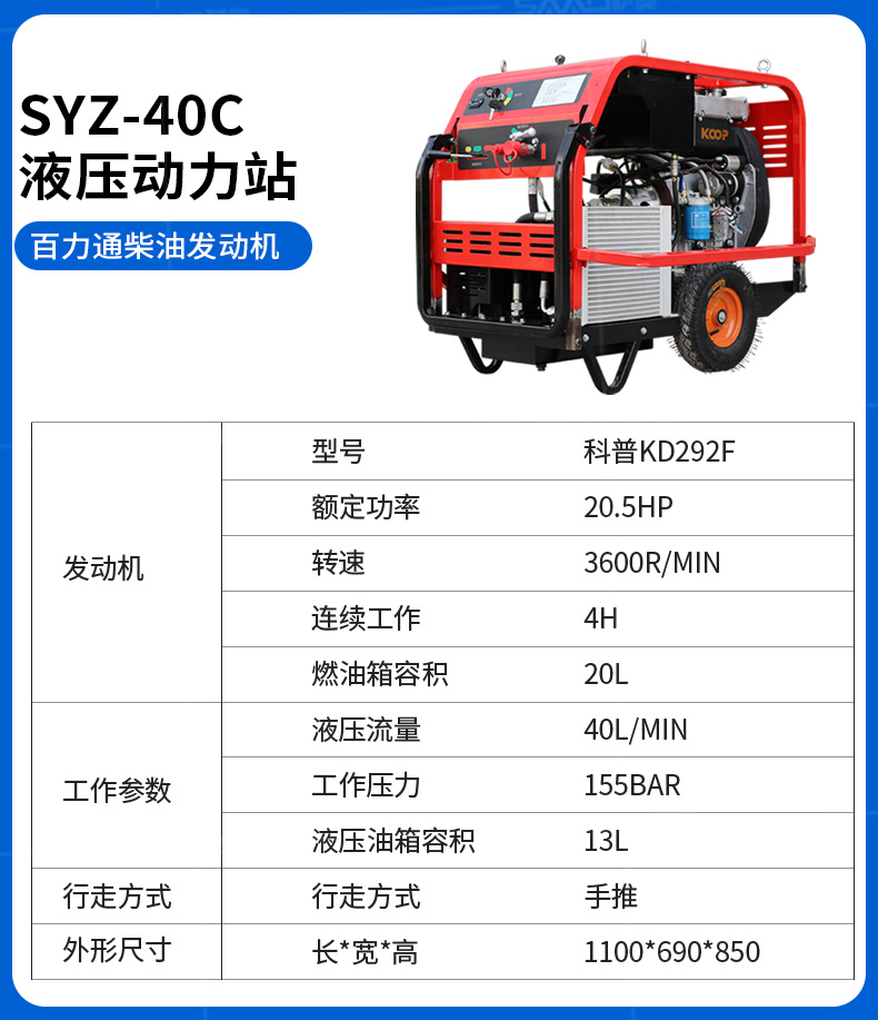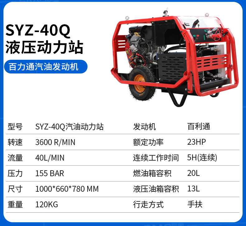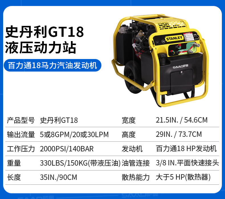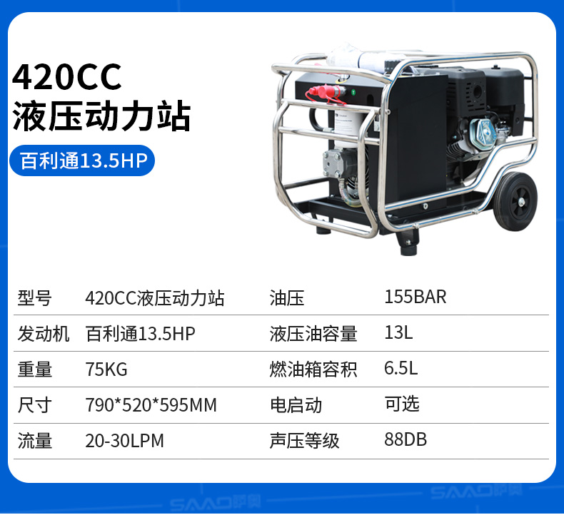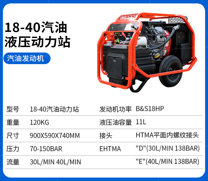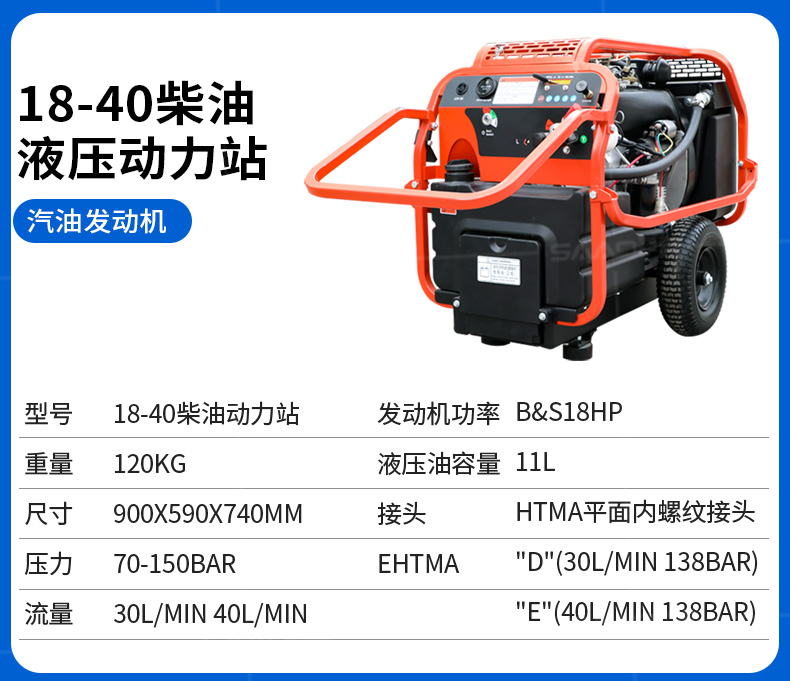 HP8動力站是為液壓設備提供持續動力的,它同時滿足1類和2類液壓設備。它采用百力通18馬力 汽油發動機,有良好的液壓油散熱系統,以滿足液壓設備可以正常、持久地工作。