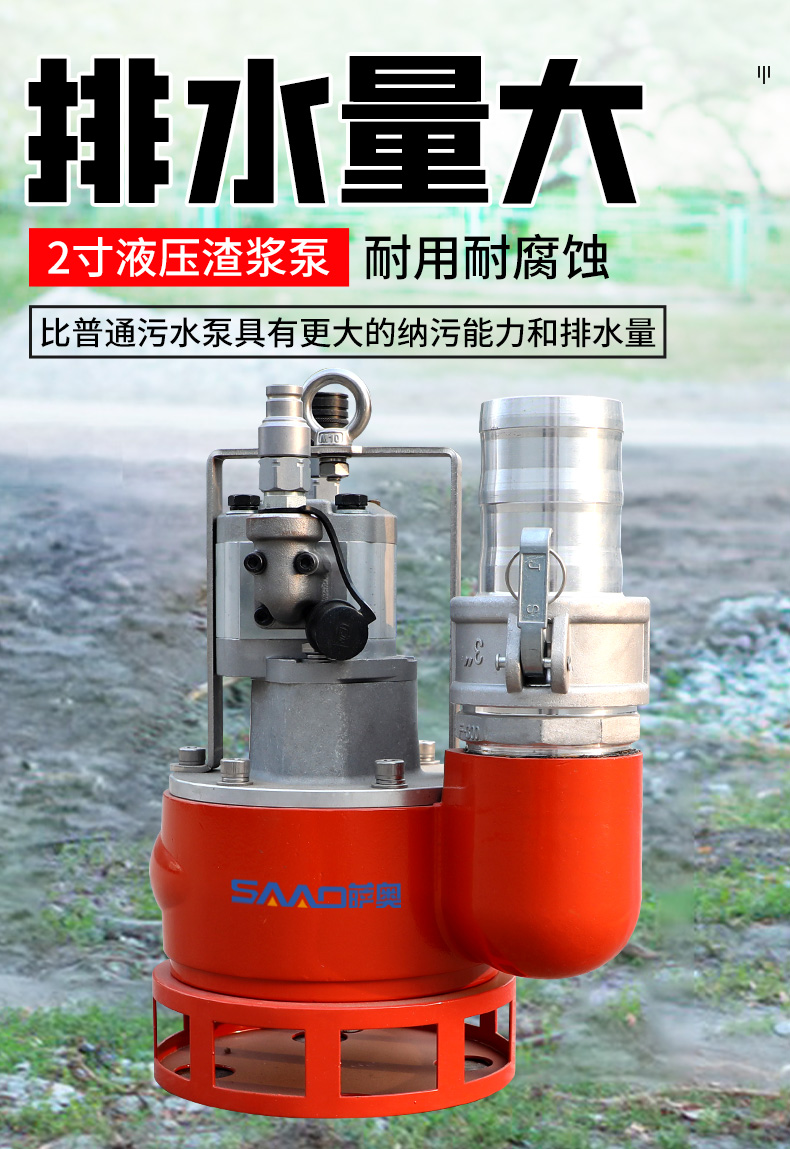 薩奧液壓渣漿泵輕質、緊湊和高效,液壓渣漿泵的用途非常廣泛,包括在建筑工地、水淹沒的開挖地和地下室連續泵送清水或污水、城市洪澇等。 這種泵以具有特殊驅動軸、油封和軸承