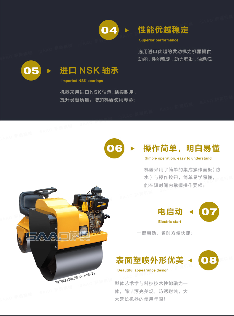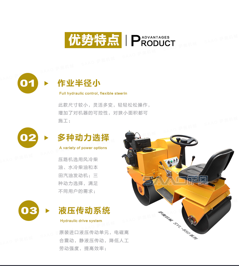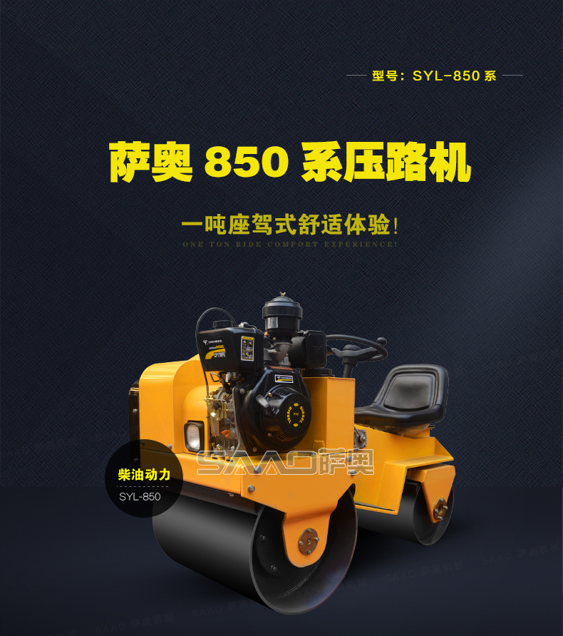 850座駕壓路機主要用于溝渠基礎,道路,體育場地的壓實整平,也可用于壓實瀝青表面的作業。